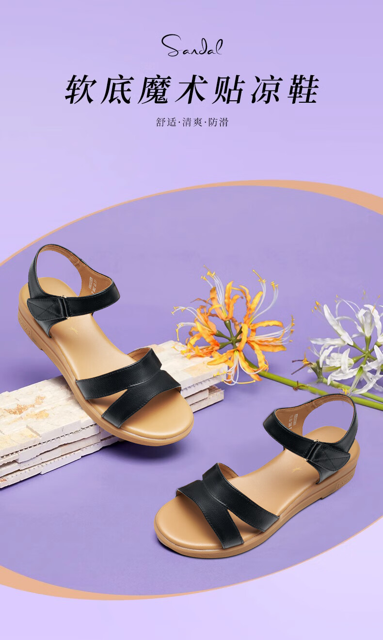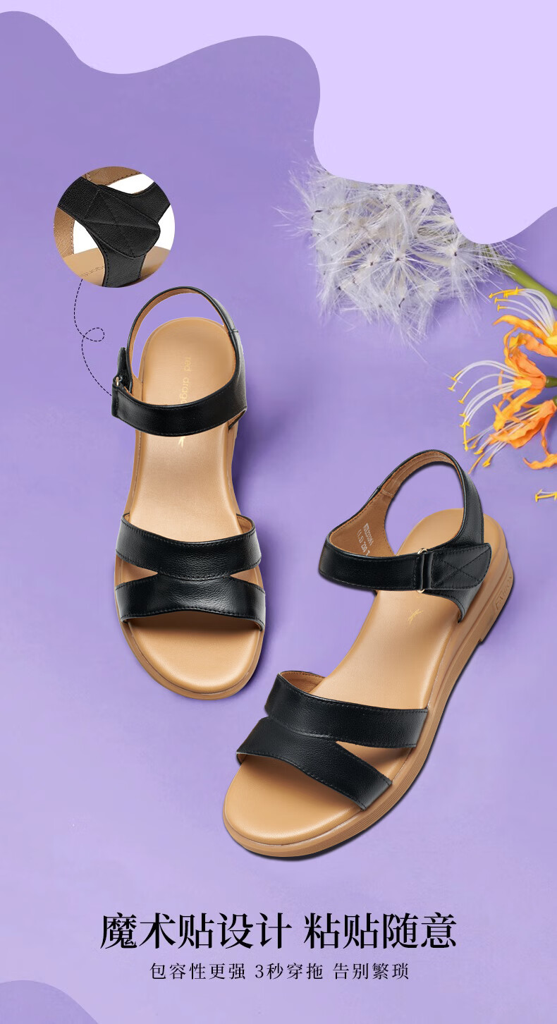 商品名称:红蜻蜓凉鞋女2023夏季透气露趾皮凉鞋软底妈妈鞋 WTK23336米白色38