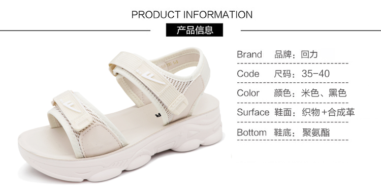 商品名称:回力 Warrior 凉鞋女软底轻便平底鞋女生厚底ins潮鞋仙女风魔术贴运动百搭休闲沙滩鞋 WSL(WZ)-0297 米色 38
