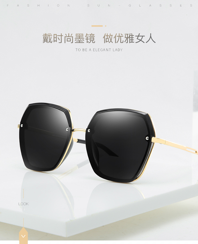 商品名称:森罗慕彤太阳镜女大框高清偏光墨镜司机眼镜时尚女士眼镜圆脸明星款开车 2212黑金框灰片