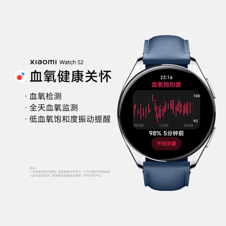 小米智能手表【支持微信】Xiaomi Watch S2 46mm 全天血氧监测 血氧异常提醒 运动手表 小米手表 黑硅胶表带
