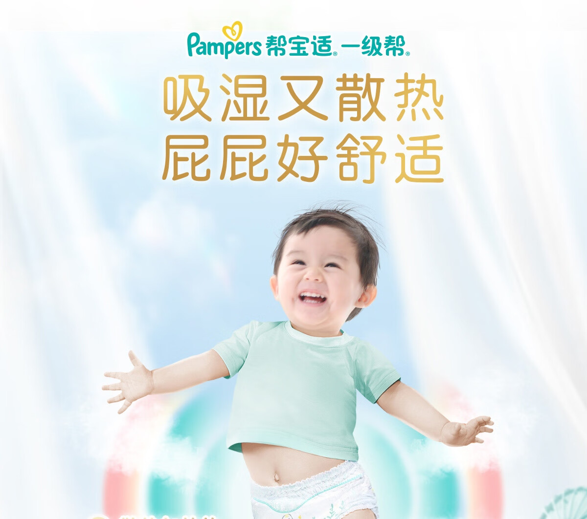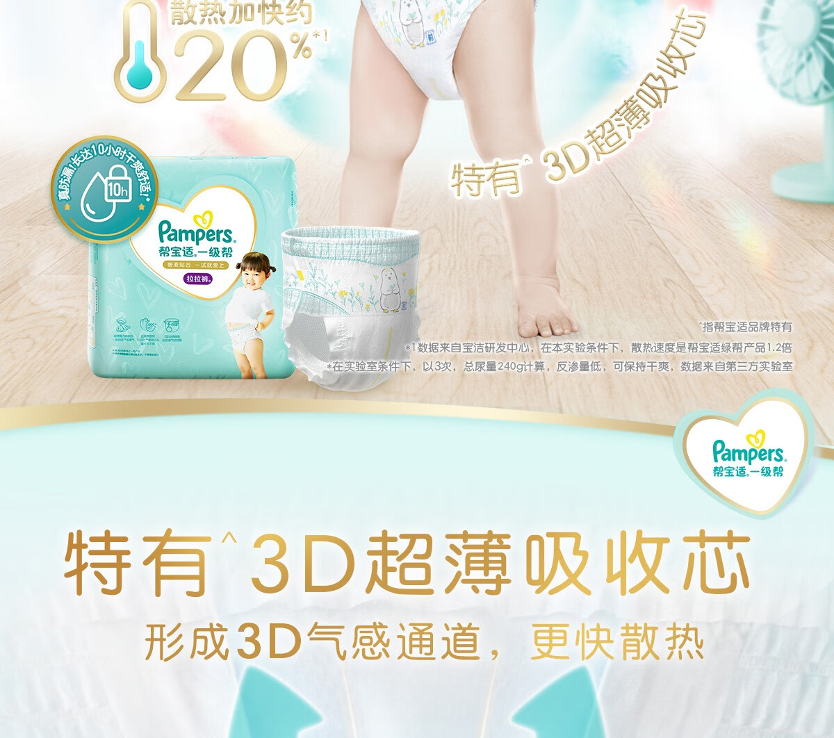 帮宝适一级帮拉拉裤®XL64片(12-17kg)尿不湿尿裤成长裤超薄透气 散热