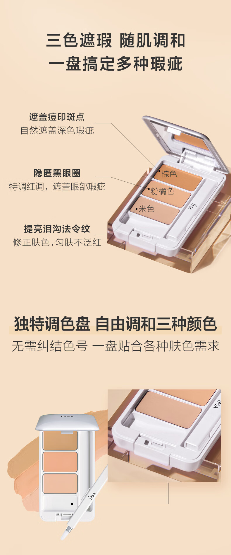 Tfit三色遮瑕膏遮暇盘遮脸部斑点痘印痘痘服帖自然裸妆化妆师专用15g